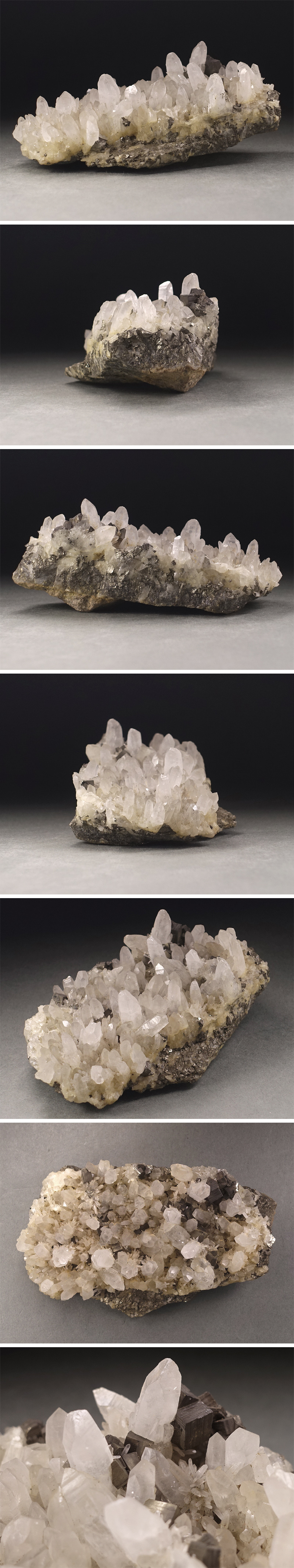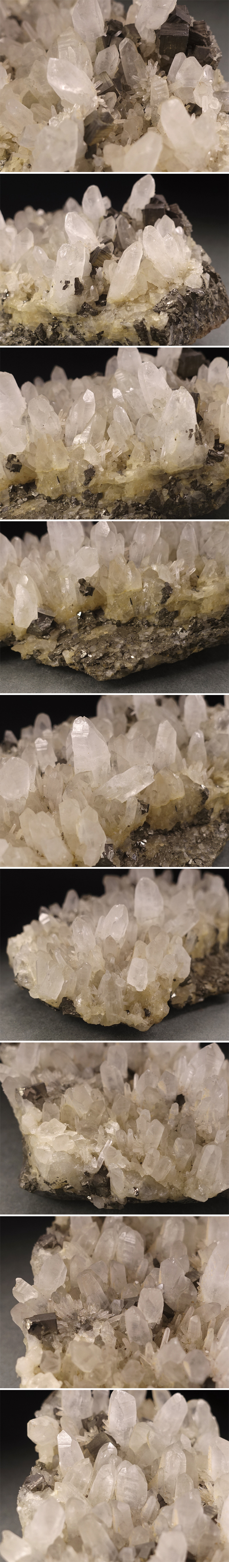 ∇花∇天然水晶原石 クォーツ・クラスター パイライト(黄鉄鉱)共生 幅13.2×7.8cm/重量586g 鉱物 天然石 宝石置物 群晶 F 收藏