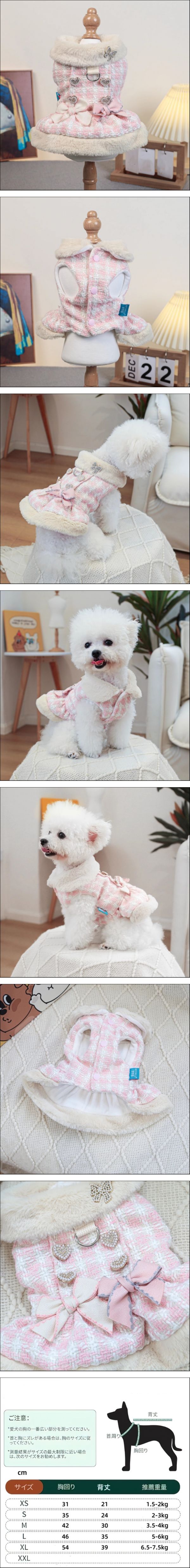 犬服 猫服 小型犬用 ワンピース プリンセスドレス 秋冬 防寒 加厚 裏起毛 ふわふわ リード対応 小リボン付き ハートボタン飾り おしゃれ | |||