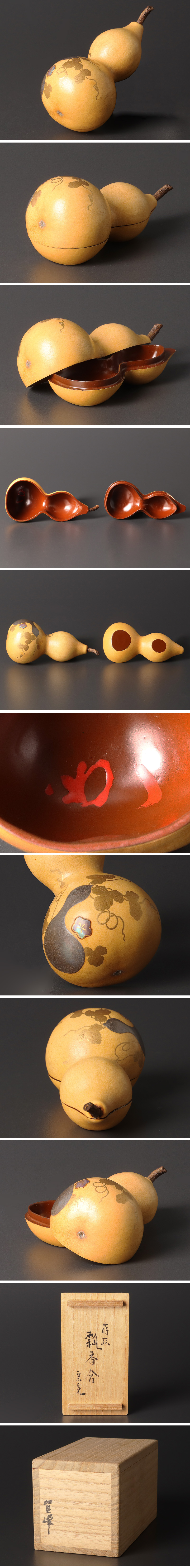 | 【古美味】賀峰作『堀内宗心(兼中斎)書付』蒔絵瓢香合 茶道具 保証品 |