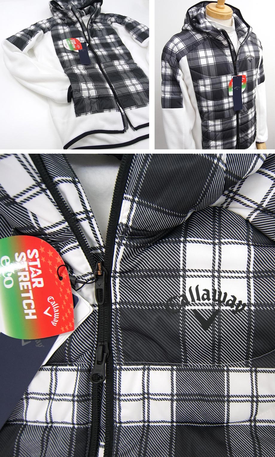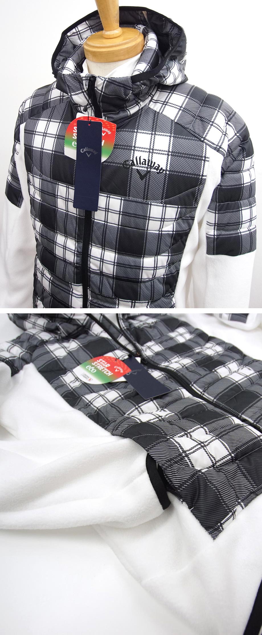 国内正規品。定価は税込23,100円の品。前身とフードにキルティング中綿、袖と後身には両面起毛のフリースと、異素材をハイブリッドさせたゴルフジャケット。高ストレッチ性・撥水・透湿・防風などゴルフに機能性満載の高機能なウェアです。ふわふわで肌触り抜群、とても軽くてあたたか。撥水加工が施されており、汚れもつきにくく、急な天候の変化にも申し分ない機能を発揮します。透湿性があるため内側のムレは排出しつつ、寒い時には温か。ゴルフをはじめ各種のアクティブなシーンからカジュアルなスタイルまで、あらゆるフィールドで快適な着心地をもたらします。どうぞお見逃し無く。(並行輸入品ではなく、国内の大手ゴルフショップやスポーツショップ、百貨店等で販売される国内正規品となります)