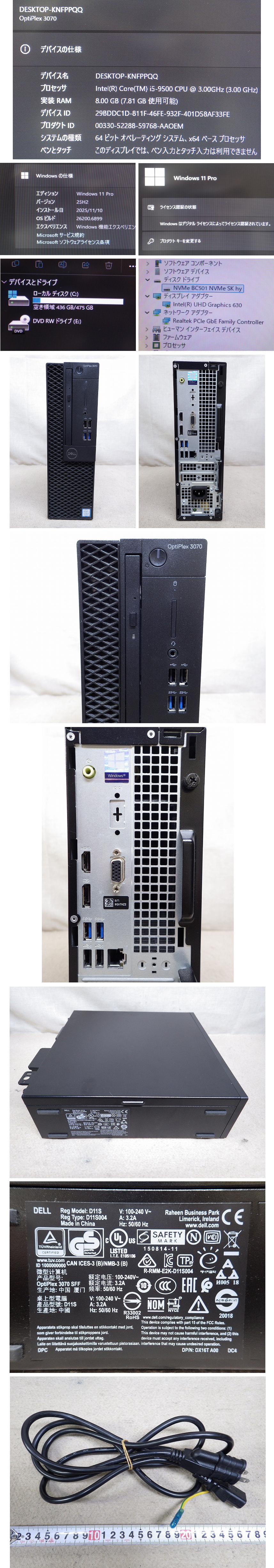 | 商品名 | Kムま2118 DELL■デスクトップPC■OptiPlex 3070■Win11Pro■Core i5-9500@3GHz■メモリ8GB■SSD512GB■パソコン 本体 |