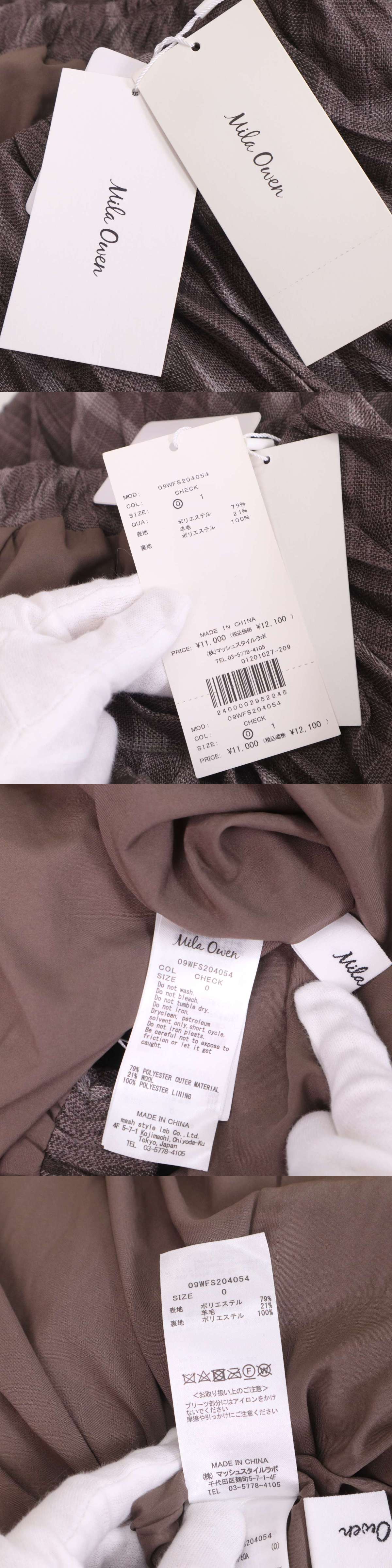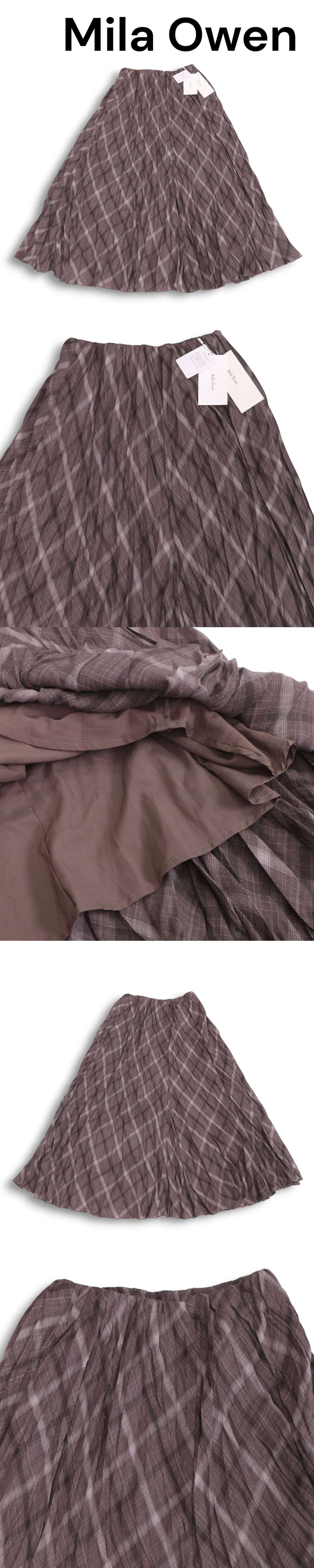 【新品 未使用】 Mila Owen ミラオーウェン ウール混 チェック柄 ワッシャー プリーツ ロング スカート Sz.0 レディース 收藏