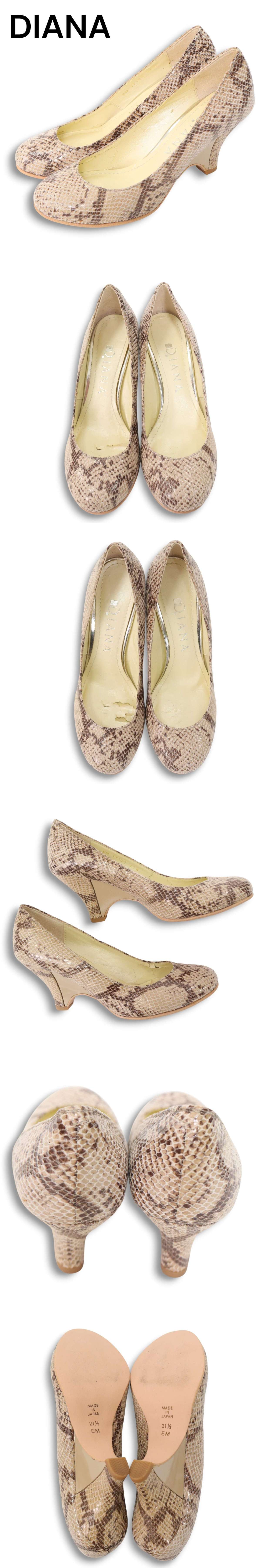 DIANA ダイアナ 通年★ パイソン柄 ヒール パンプス Sz.21 1/2 レディース 日本製 收藏