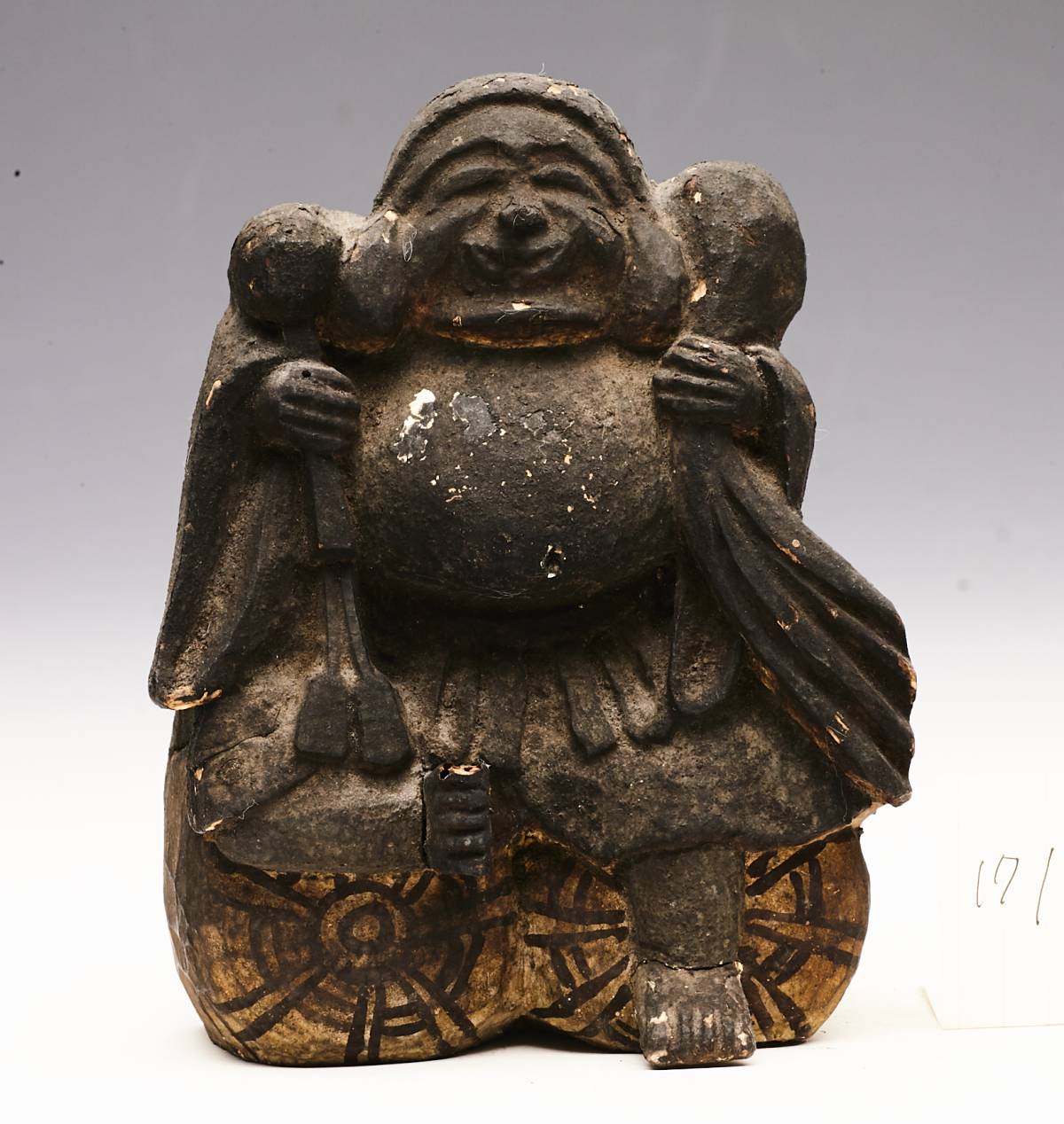 黒光りする様が素朴な笑みを湛え美しく、二つと見ない個性ある造形、穏やかなパワーを放つところが値打ちで面白いといいます。