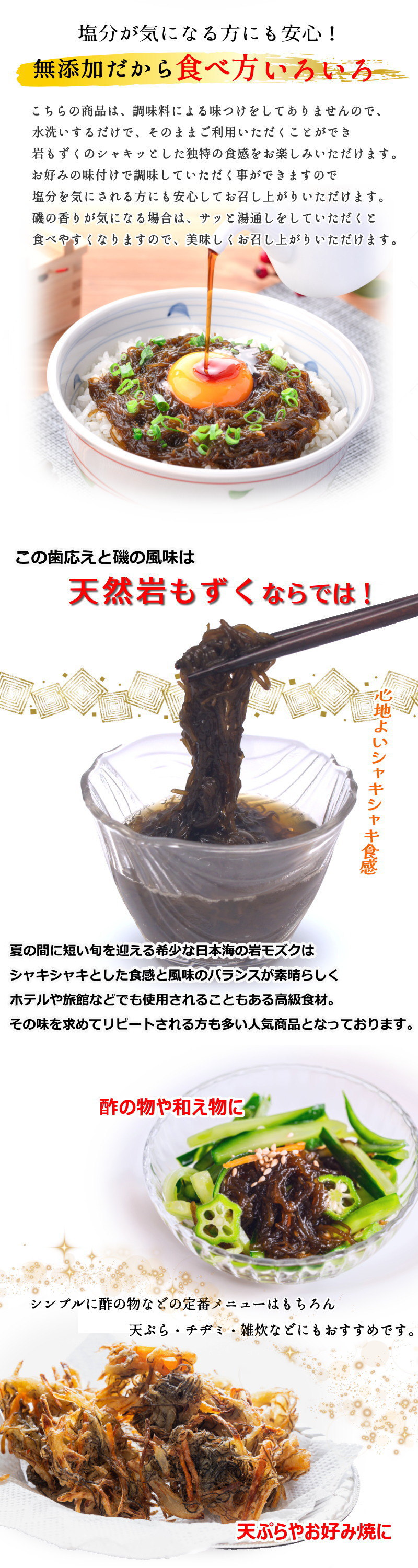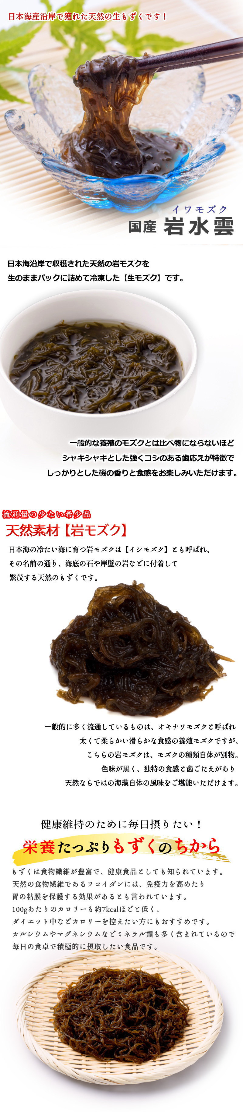 日本海沿岸で獲れる国産の天然岩もずくとなります。