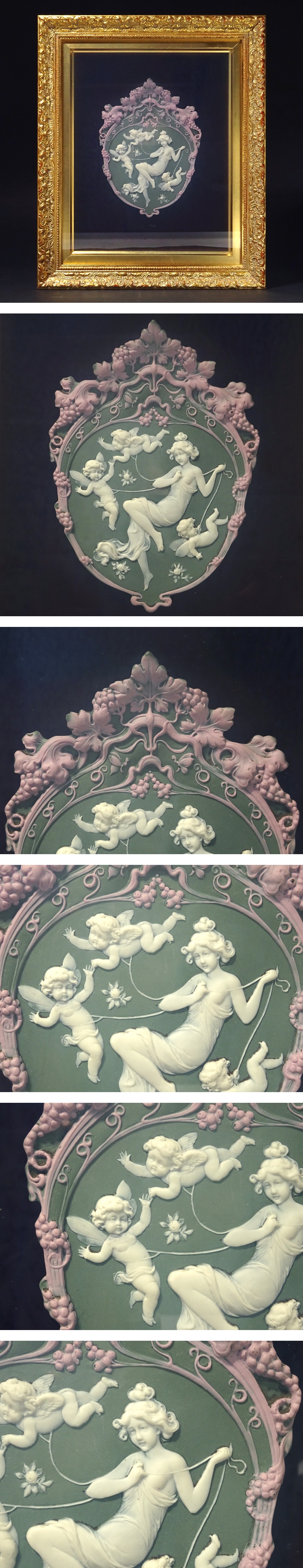 慶應◆19世紀 ドイツ【Rudolstadt Volkstedt ルドルシュタット・フォルクシュテット窯】ジャスパーウェア 神話図レリーフ 陶板 額装 收藏