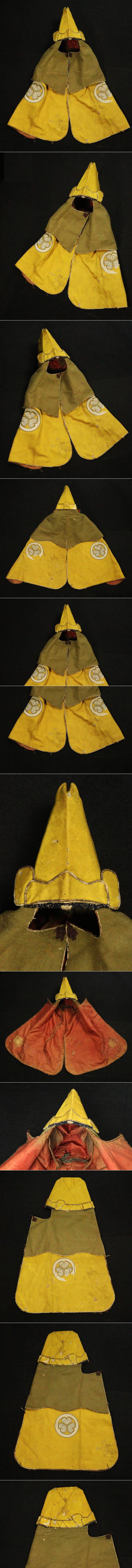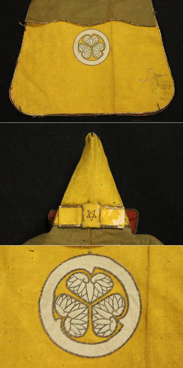 【ASAHI】時代 徳川葵紋入 頭巾 烏帽子 山岡頭巾 武家火事装束 古布・陣羽織・鎧兜・武具[71127wt] 收藏