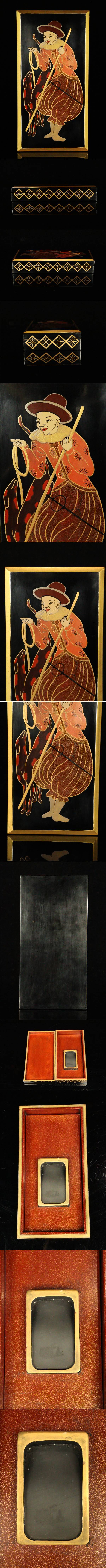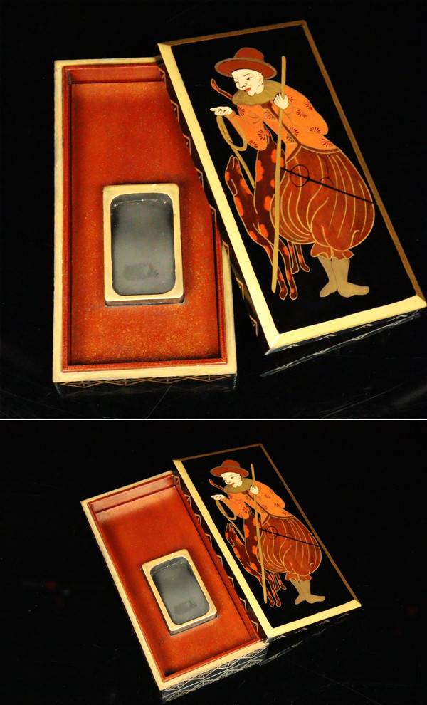 【ASAHI】長崎県旧家蔵出品 漆塗蒔絵南蛮人像図 硯箱 隠れキリシタン 硯 書道具[711117wq] 收藏