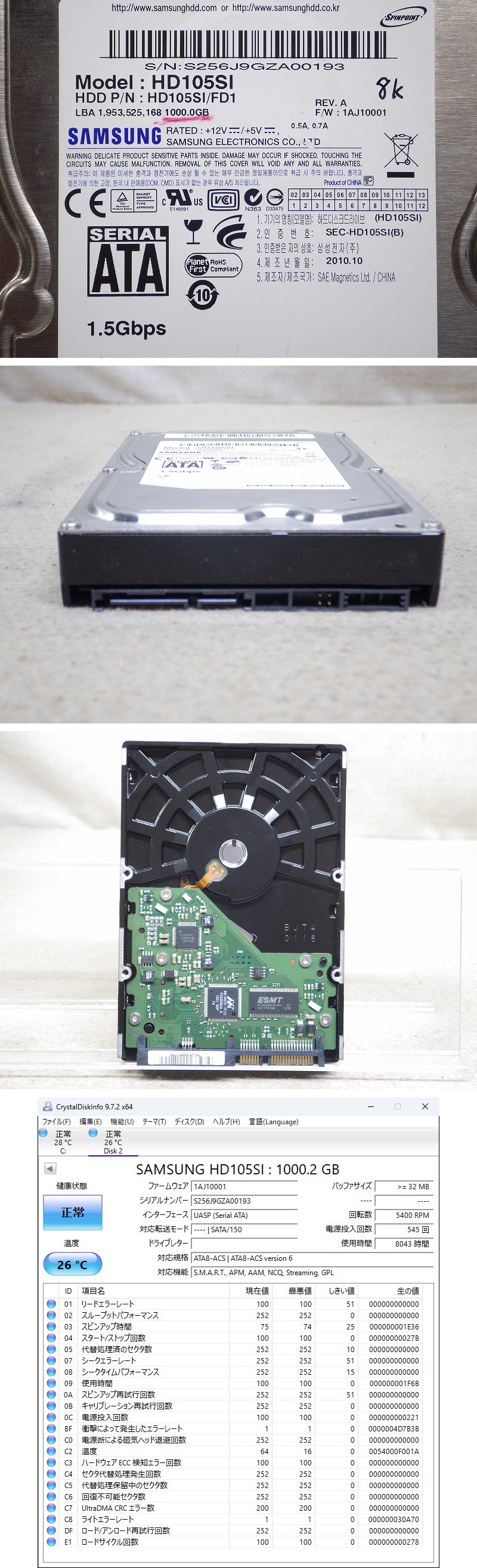 Kネま2238 SUMSUNG/サムスン 3.5インチ SATA 内蔵HDD 1TB HD105SI パソコン周辺機器 PCパーツ ハードディスク 收藏
