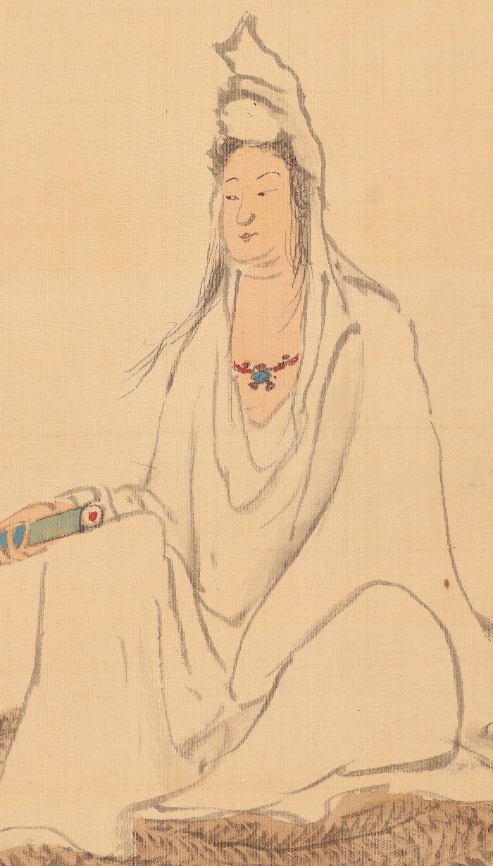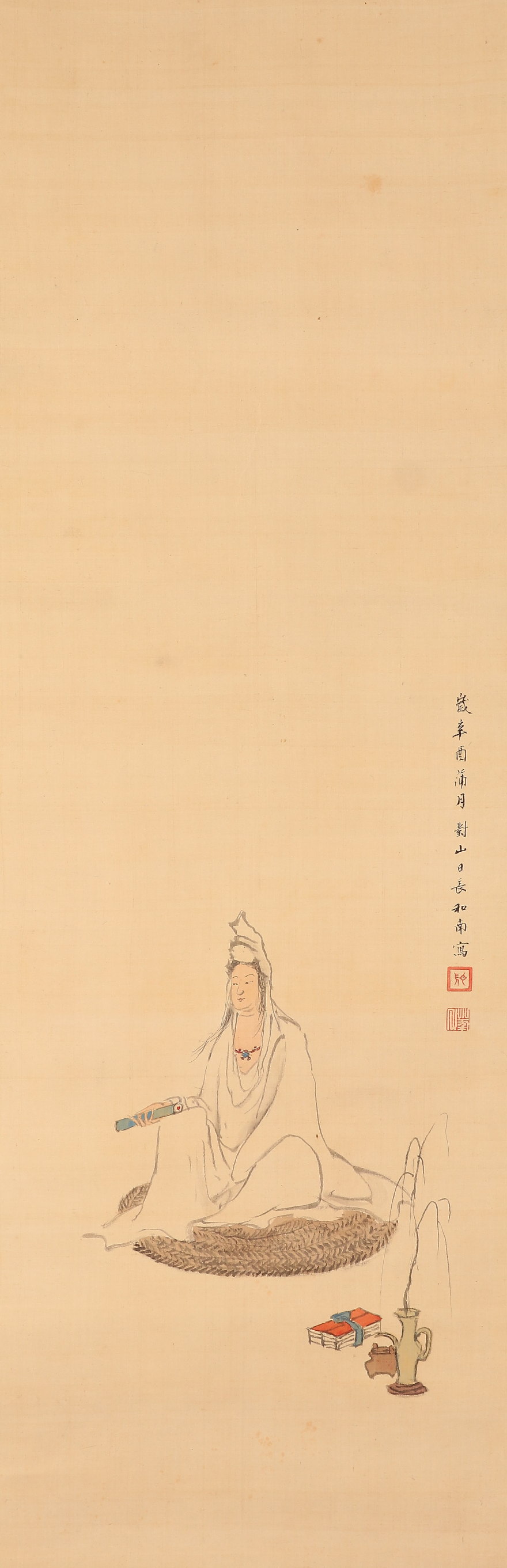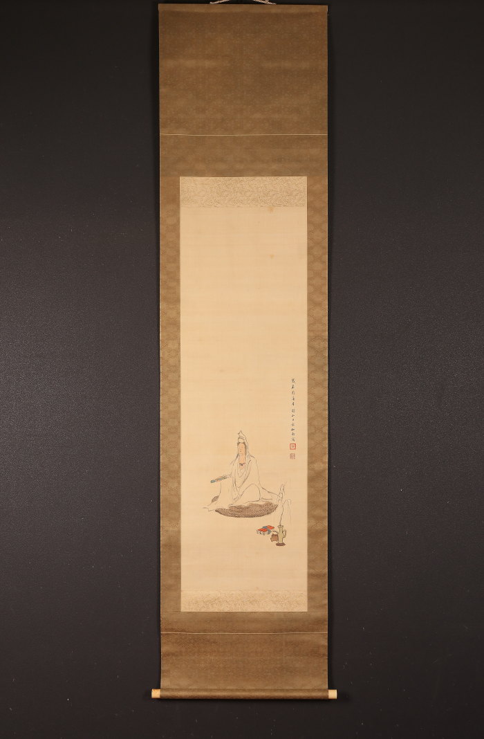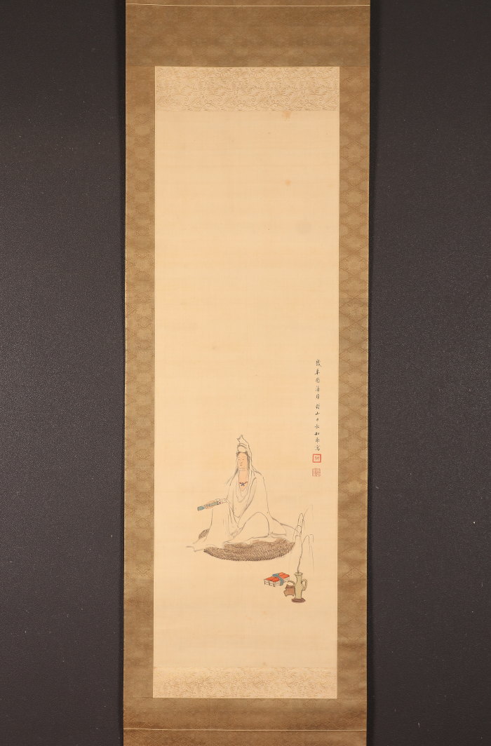 【模写】【伝来】大阪画人特集 am7713〈日根対山〉仏画 白衣観音図 極箱 貫名海屋師事 江戸時代後期 南画家 大阪の人 中国 收藏