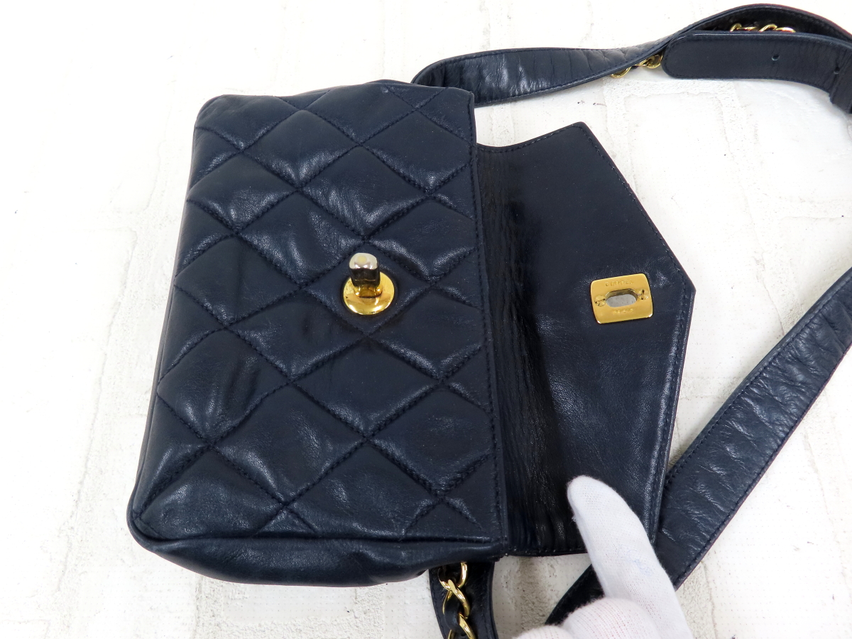◆美品◆CHANEL シャネル◆マトラッセ◆ラム レザー 本革◆ウエスト ポーチ ボディ バッグ◆紺 G金具◆ヴィンテージ◆チェーン◆A14434 收藏