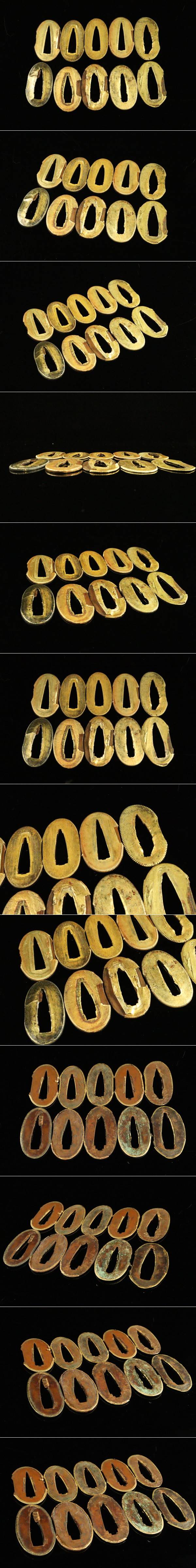【ASAHI】金着せ切羽!金被せ!刀装具 拵え 金無垢 8枚まとめて 46g1枚あたり1g~3gの金がとれます。金保証[710152無し] 收藏