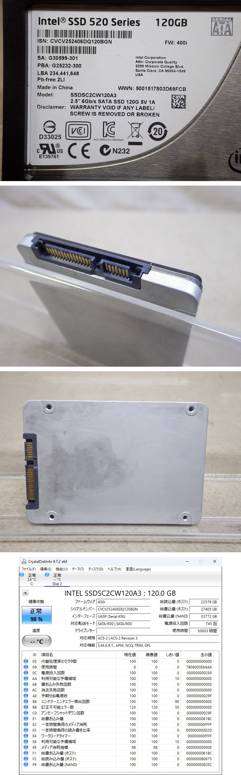 Kレま2268 メール便 送料280円 Intel 2.5インチ SATA SSD 120GB SSDSC2CW120A3 パソコン周辺機器 PCパーツ ハードディスク 收藏