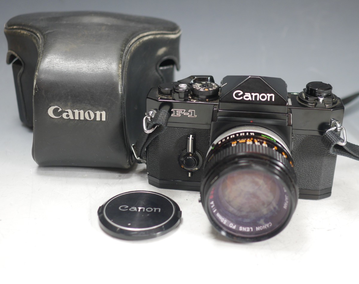 ◆Canon【F-1】一眼レフ+レンズ【FD 50mm 1:1.4 S.S.C.】現状・ジャンク品 革ケース付属 キヤノン 收藏