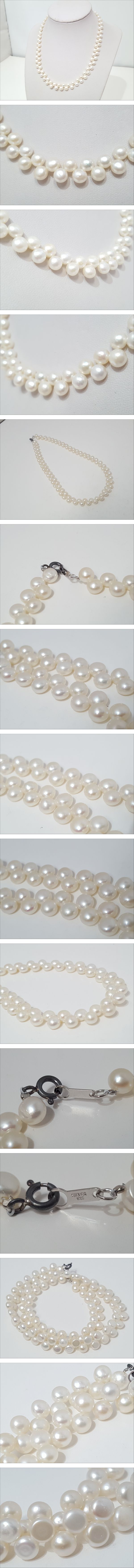 【美品】シルバー925留具 本真珠 デザインネックレス/パール粒約4.2×5.8mm/アクセサリー/全長約39cm/プリンセスレングス/04SH120201 收藏