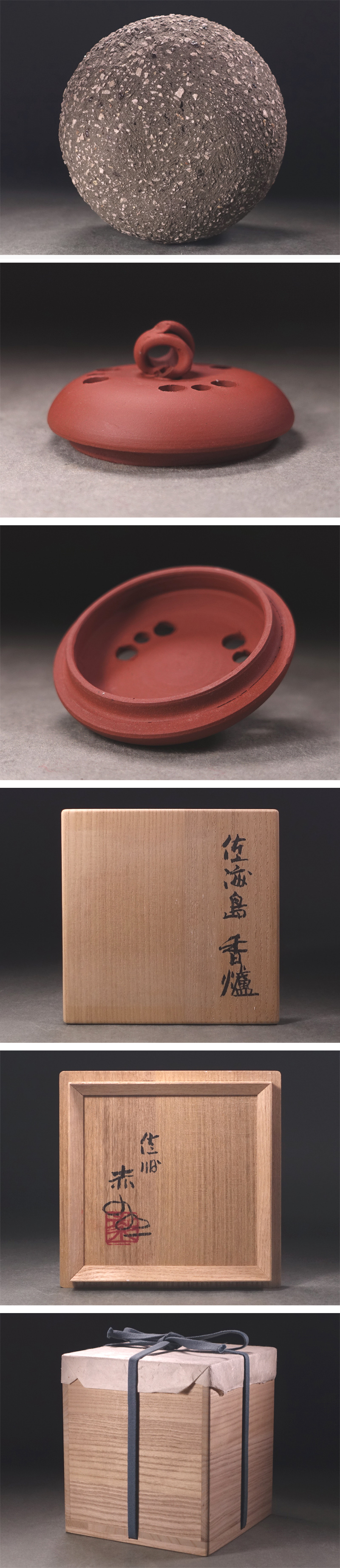 ∇花∇人間国宝【五代伊藤赤水】秀逸作 2009年以降 佐渡ヶ島香炉 共箱付 佐渡島風景を再現した独創的逸品 收藏
