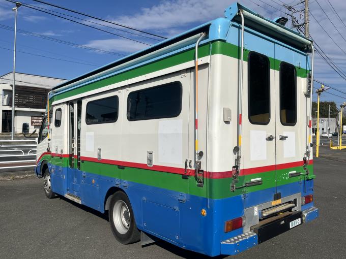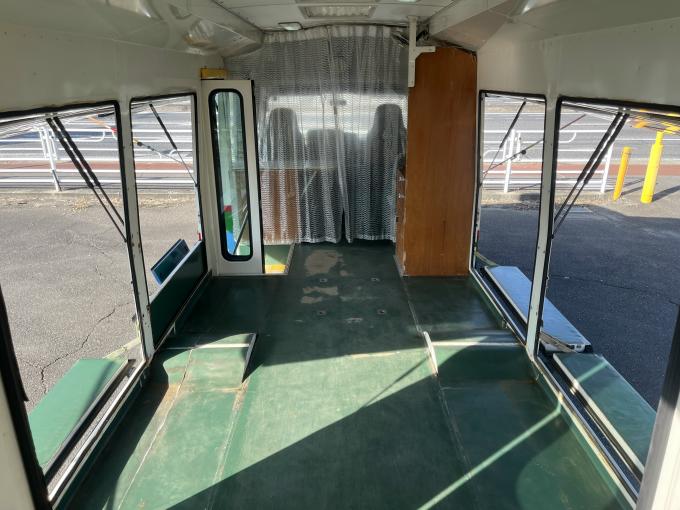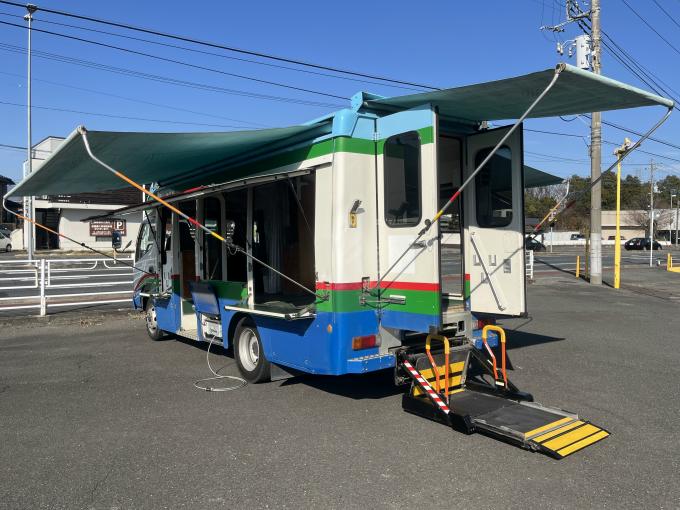 後室スペース内寸:長さ3m50cm・幅1m98cm・高さ1m85cm パワーリフト:和光工業製 床下格納リフト サイズ長さ1m20cm×幅71cm コードリモコン作動 左右サイド&リア電動開閉オーニングテント(リアは電動作動不良の為、手動開閉です) 後部入口格納ステップ 100Vインバーター(最大1000W) 100V外部入力電源ソケット&入力電源コード 100Vコンセント(室内2口×1ヶ所・室外2口×1ヶ所) 観音扉 室内灯3個 元図書館車の為、本棚の取外し跡・キズヨゴレあります。 各種の仕事や趣味・キャンピングカーベースなどにも良いと思います。