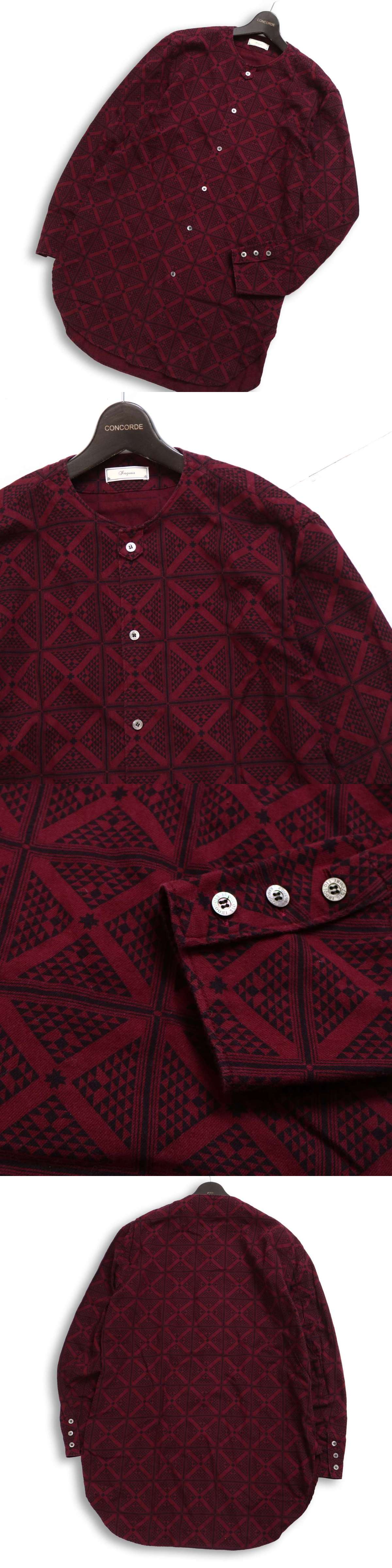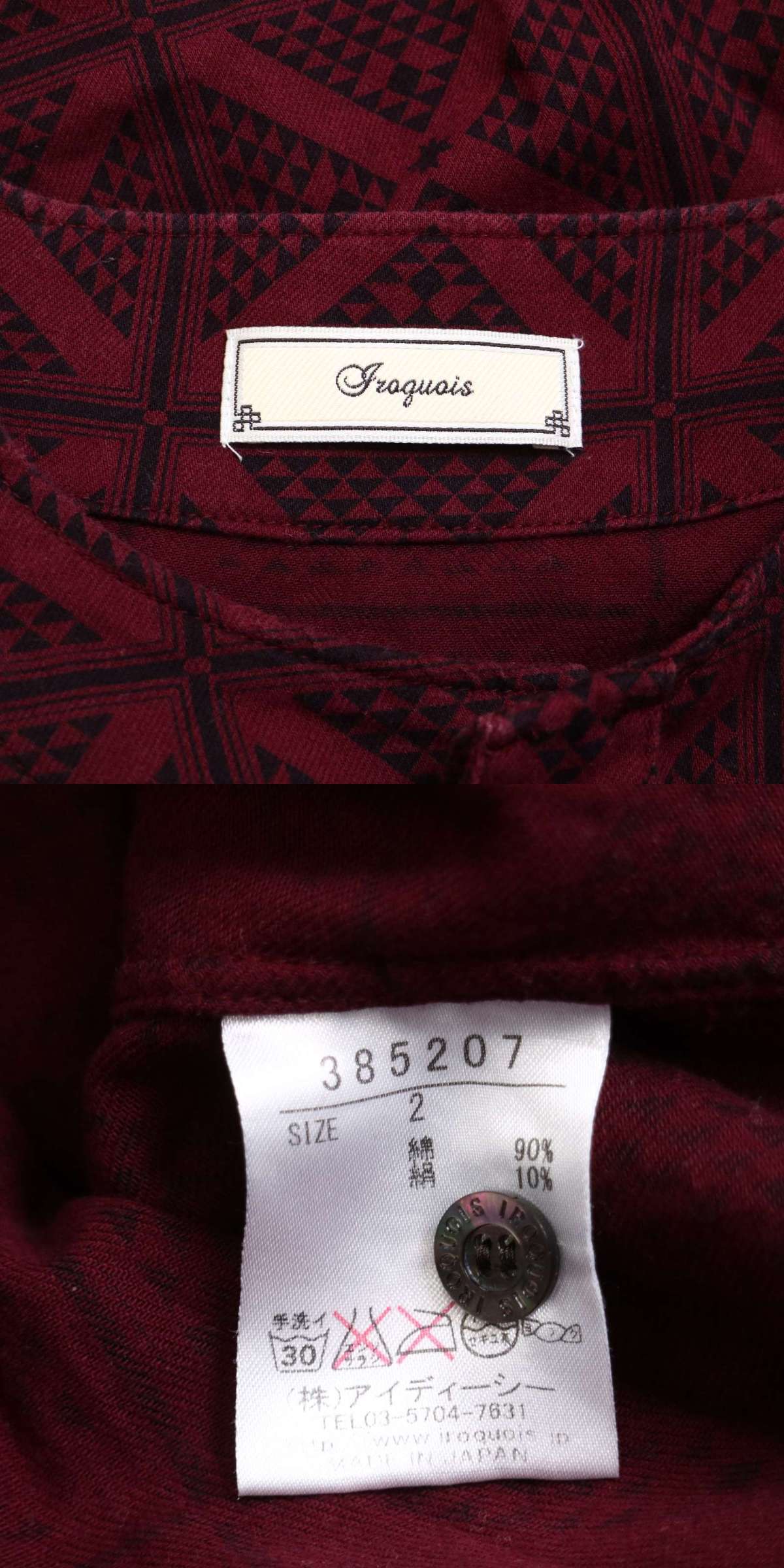 Iroquois イロコイ 通年 絹 シルク混★ 幾何学模様 総柄 長袖 ノーカラー ロング シャツ Sz.2 メンズ 日本製 收藏
