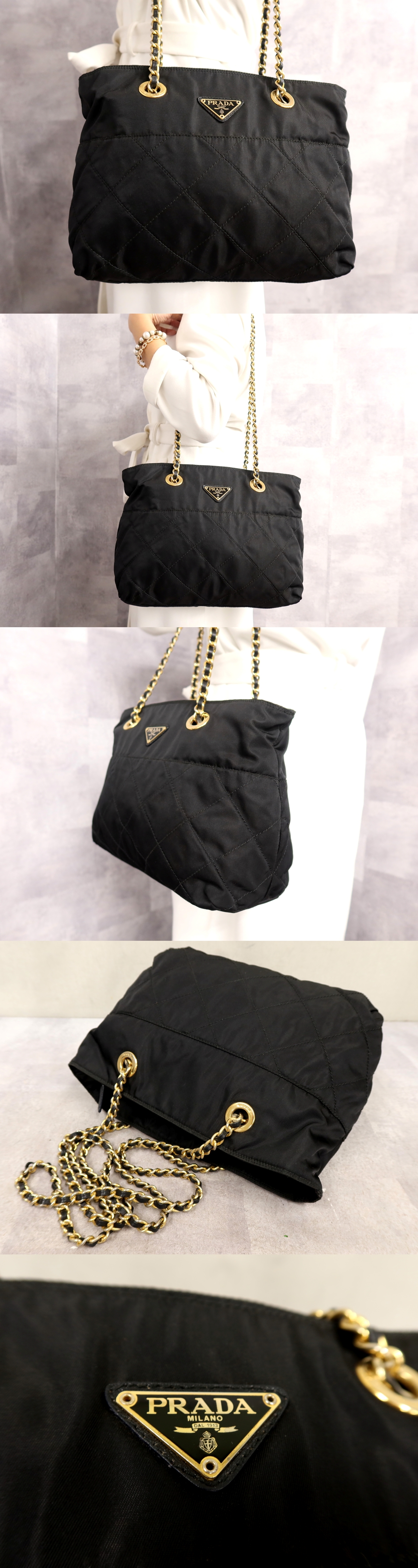 ●美品●PRADA プラダ●三角ロゴプレート●キルティング ポコノ ナイロン カーフ レザー 本革●チェーン ショルダー バッグ●黒●Js63370 收藏