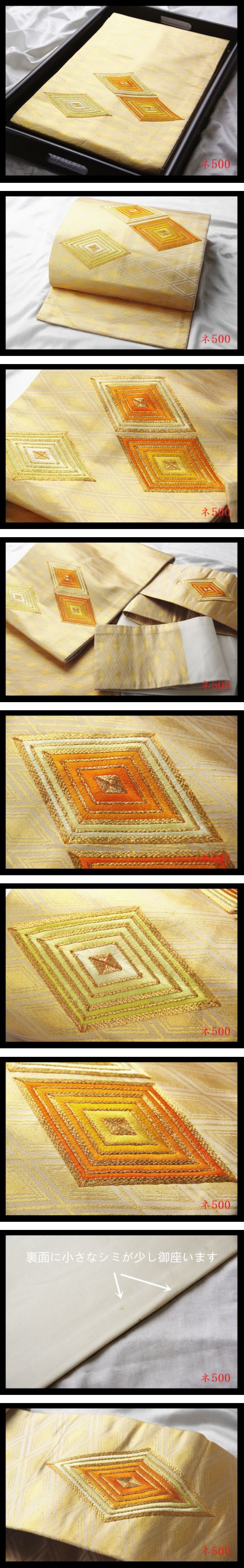 【ネ500】厳選美品 菱紋 金色地 気品豊かに 正絹純金糸高級美術名古屋帯 ◇検◇簪着物袋帯名古屋帯帯締め 收藏