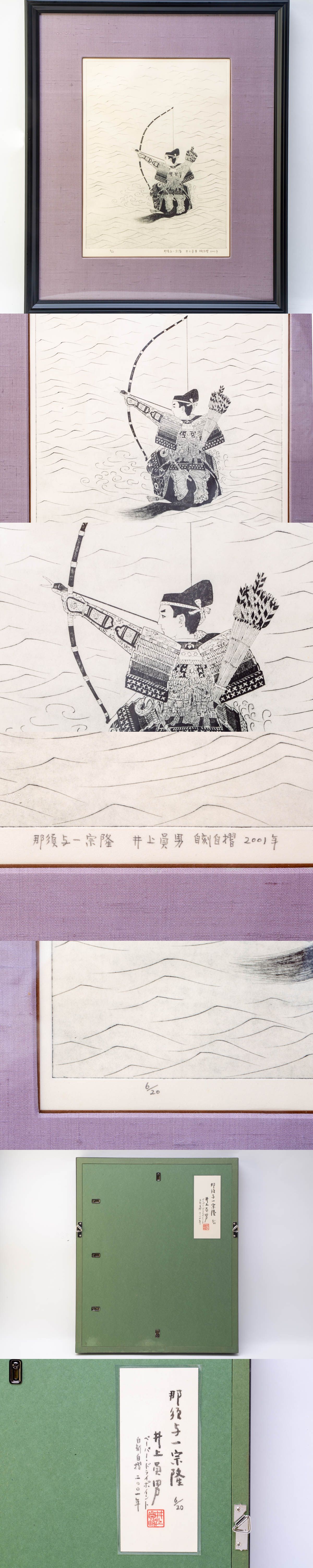 【真作】井上員男 「那須与一宗隆」 6/20 ペーパードライポイント 時刻自摺 2001年 共シール 直筆サイン 額装 #38187YR 收藏