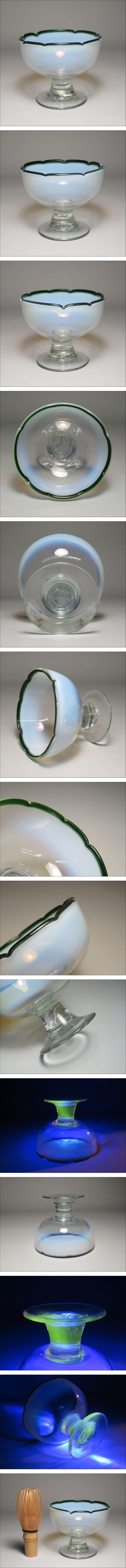 | 1円スタート~明治期~大正ロマン 乳白色 緑縁口 輪花型 氷コップ/アイスカップ ウランガラス 気泡ガラス 吹きガラス/昭和レトロ | ||