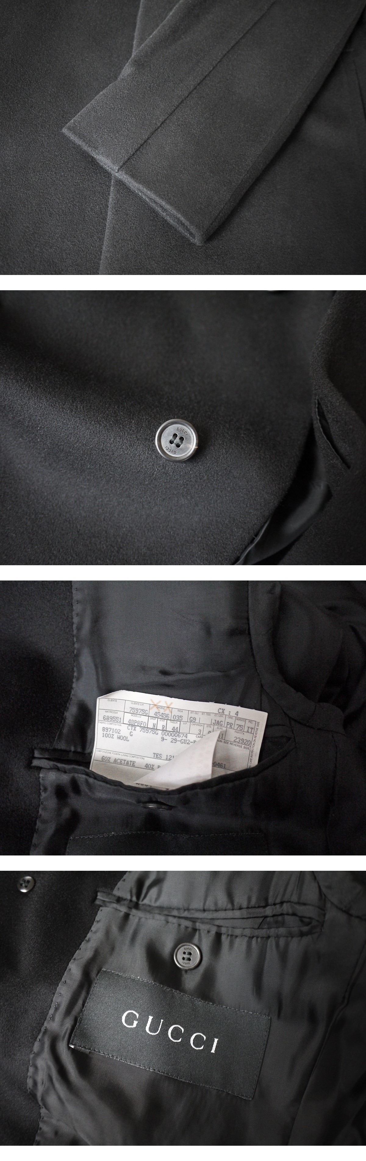 brand GUCCI made in Italy price \415,000 material wool 100% color Black size 44 肩幅44 着丈88 袖丈65 身幅51 (多少の誤差はご了承ください。) 状態 使用感のあまり感じられない美品となります。裏地含めダメージは見受けられず末永くご使用頂ける状態です。 |
