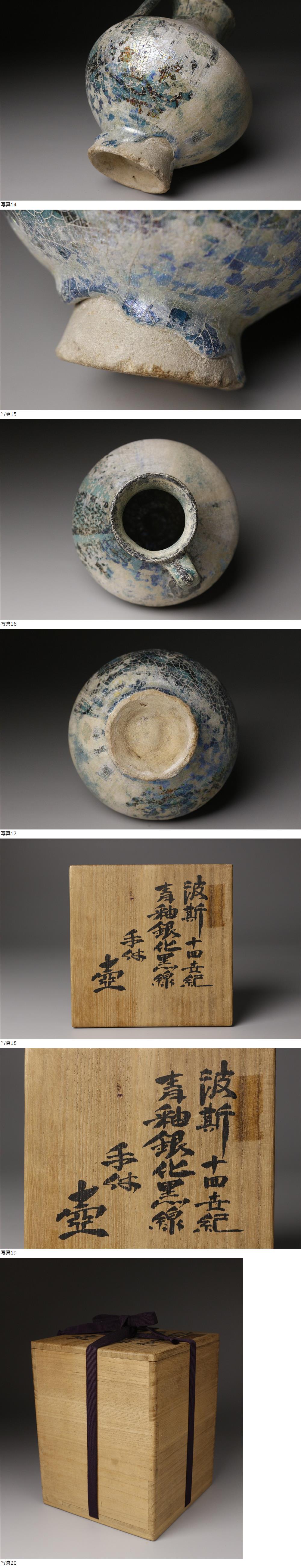 【LIG】14世紀 ペルシャ 青釉銀化黒線 手付壷 虹色銀化 時代古玩 古陶 ① 2512296- 收藏