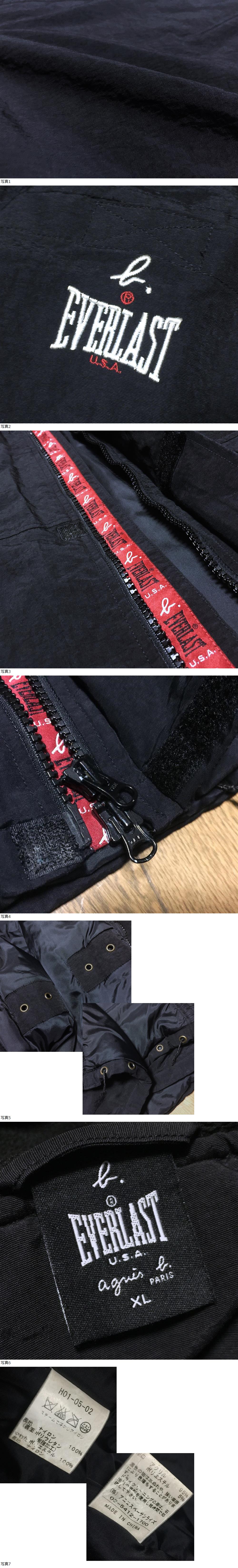 希少 agnes b. アニエスベー x EVERLAST エバーラスト コラボ ナイロン 中綿 マウンテンパーカー フーデッド ジャケット XL 黒 ブラック 收藏