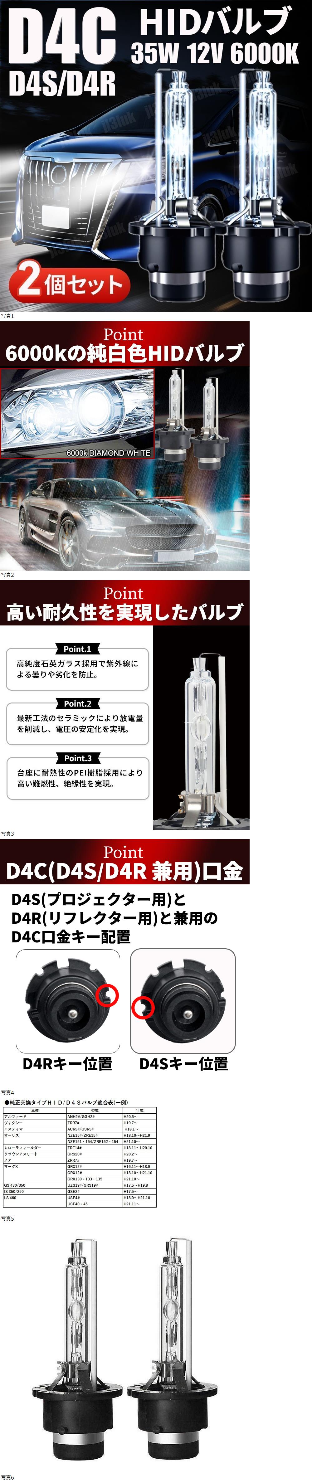 HID バルブ D4C 純正 互換 交換 ヘッドライト 2個 12V 24V 兼用 35W 6000K D4S D4R バーナー 車検対応 ニッサン ホンダ トヨタ スバル 收藏