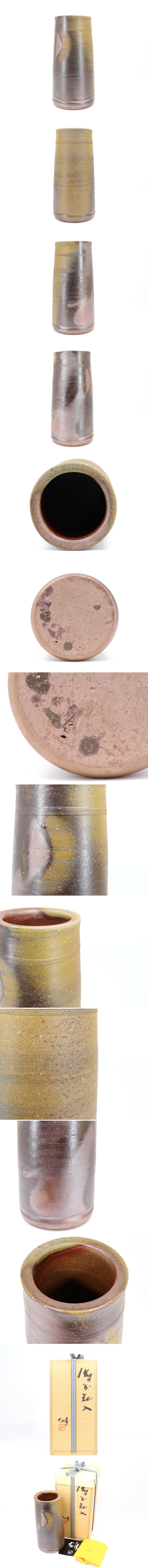【蔵】備前焼 人間国宝 藤原雄 備前花入 花入 花器 花瓶 栞 共布 共箱 本物保証 Y4513U 收藏