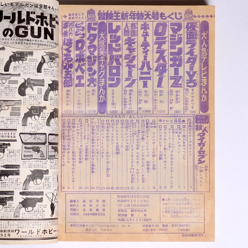 【漫画雑誌】冒険王 1974年1月号 南沙織 フォーリーブス 天地真理 桜田淳子 仮面ライダー マジンガーZ 秋田書店 - 管: JP43 收藏