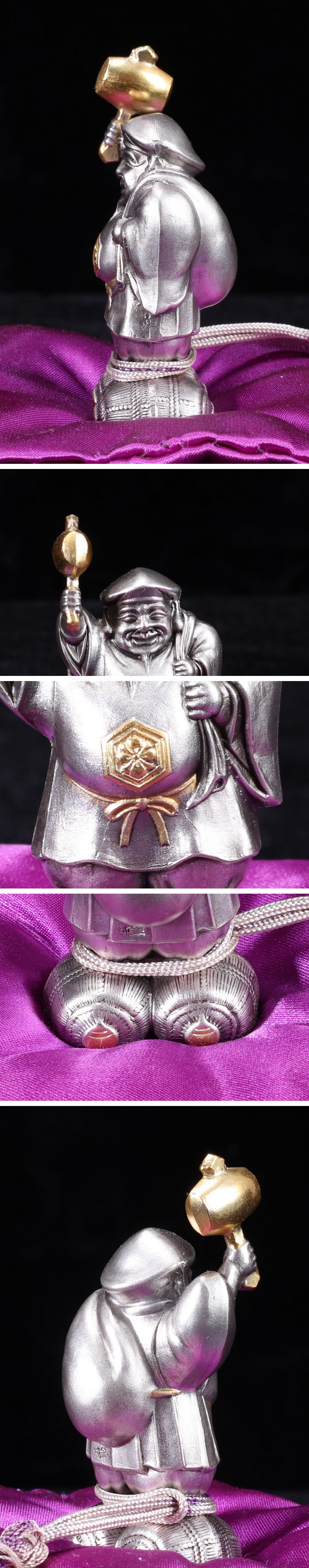 【珍品堂】1円から 置物 大黒天 純銀 刻印有 SILVER 時代物 古美術 骨董品 重215g AC51AZ-J 收藏