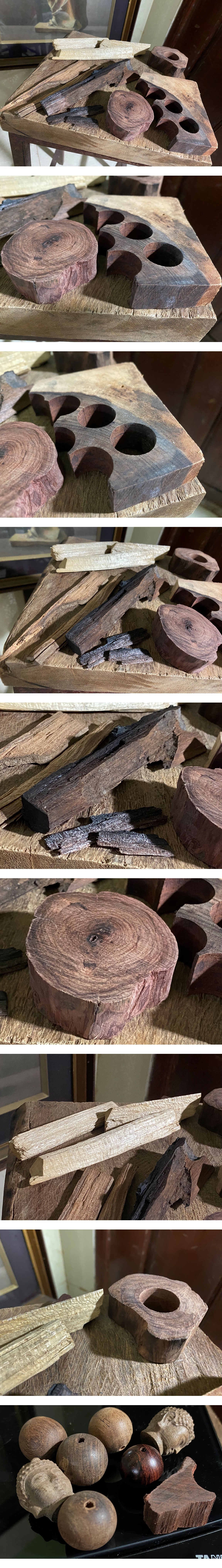■カンボジア産の超希少種海南黄花梨(中国の正式学名種別では海南が付きます。)の数珠玉を抜いた後のブロック、小片です。
