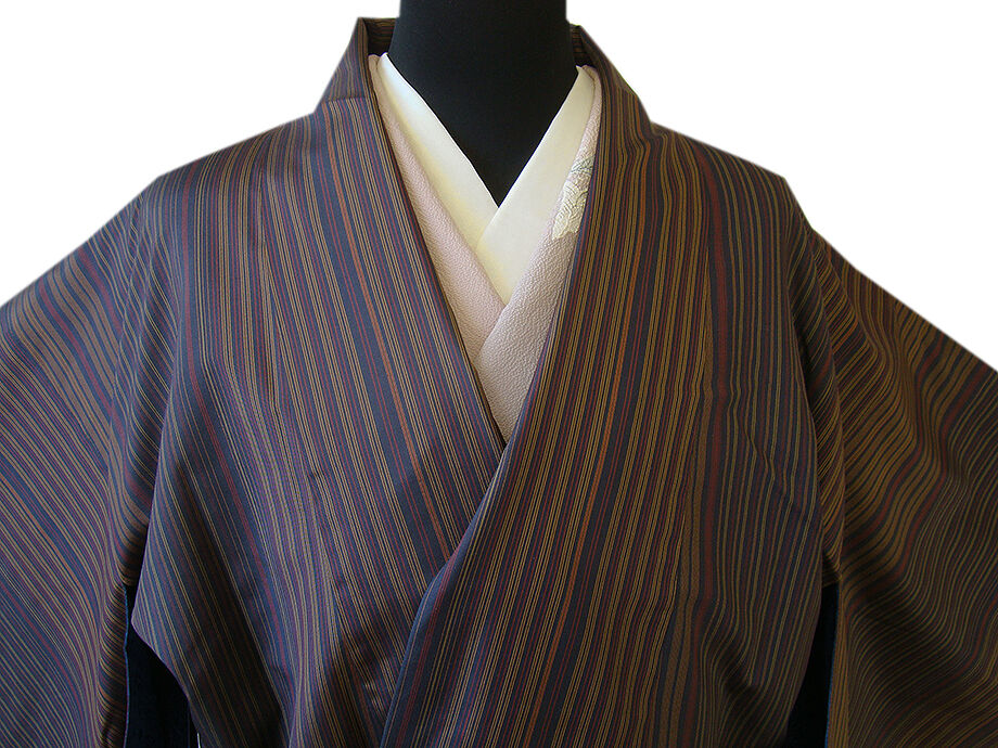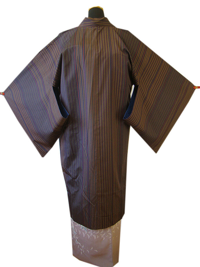 きものしらゆり 裄71cm 超ロング寸 縞柄 大島紬 リバーシブル仕立て 道中着 正絹 身長163cm~171cmの方に最適 B834 收藏