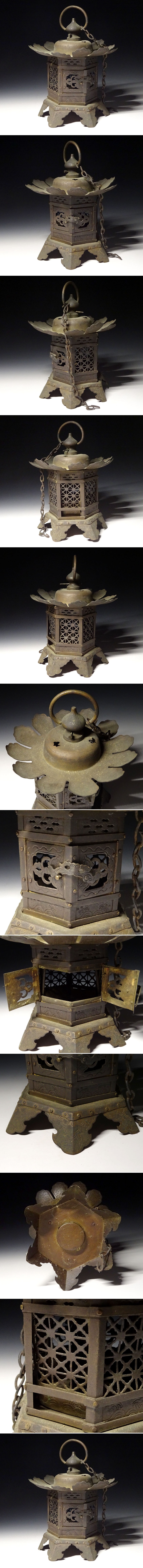 緑屋c■ 銅製 六角 吊灯篭 灯籠 寺院仏具 仏教美術 bnit/1-215/4-3#80 收藏