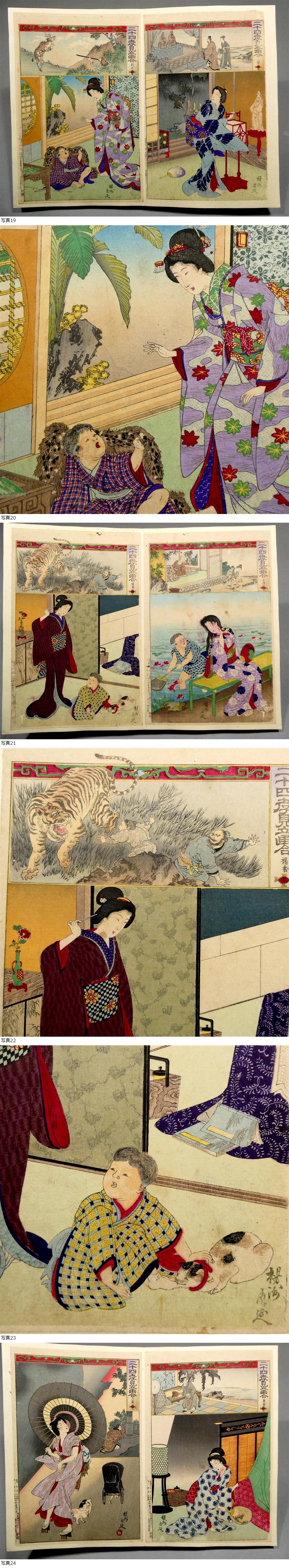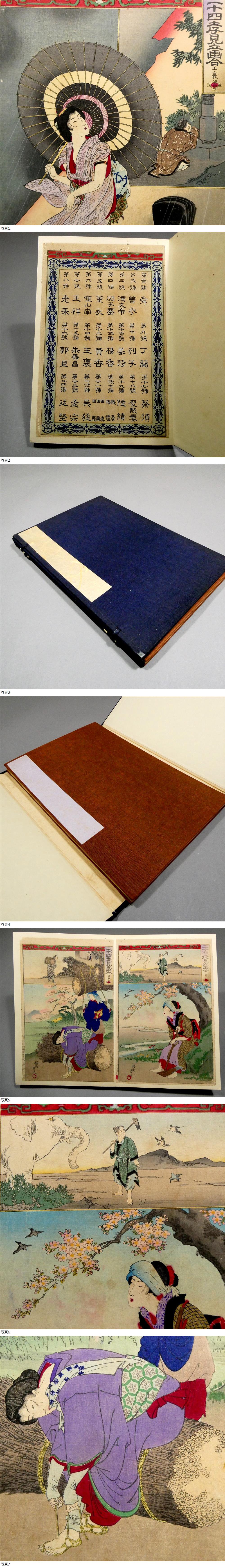楊洲周延 完品!◆木版浮世絵 「二十四孝見立画合」 24枚揃+目録 計25枚◆明治23-24年 折帖 帙入◆中国故事と美人画◆歴史画 見立絵◆29 收藏