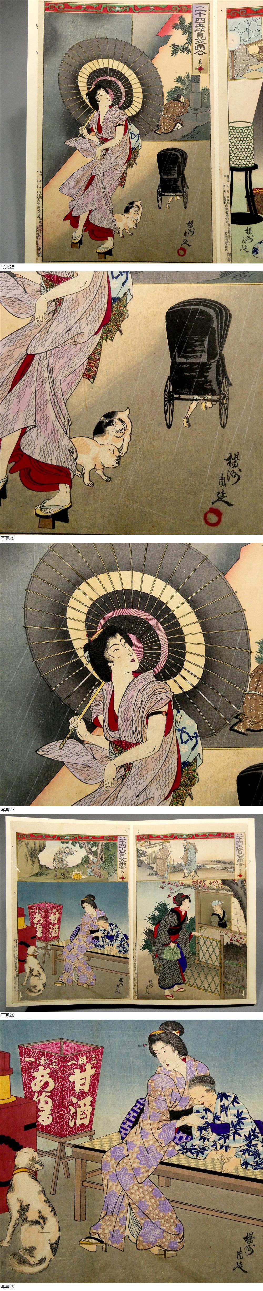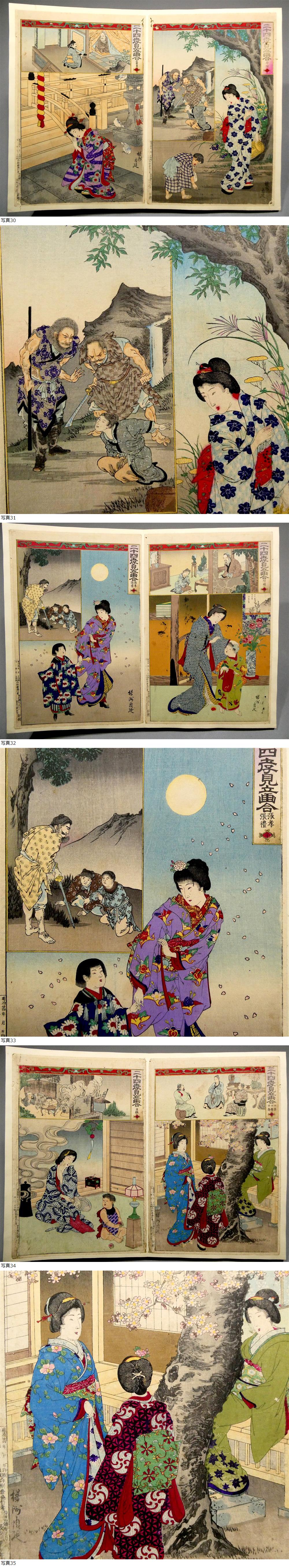 ■ 明治浮世絵の巨匠・楊洲周延、孝行の物語と美人の競演 「二十四孝見立画合」 24枚+目録 完品 ■