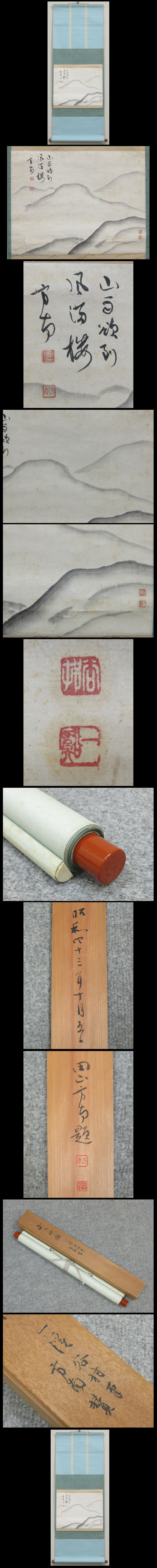 【心庵】掛軸 田山方南賛 一渓画 紙本 山又山図/肉筆 付箱 真作 国宝鑑査官 禅僧の墨跡研究家 B775 收藏