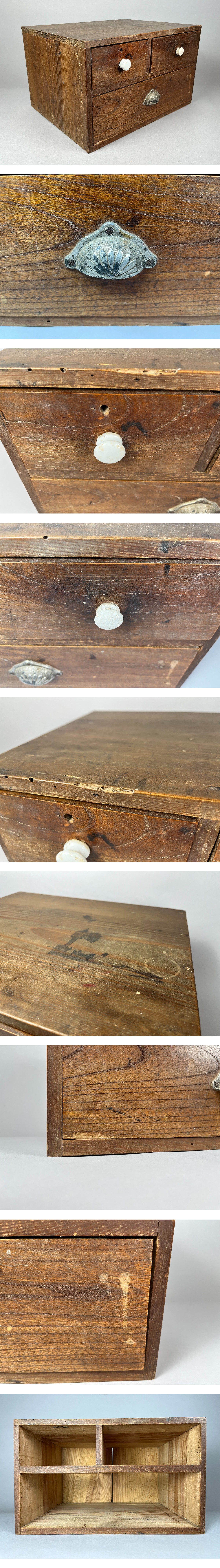 A877 古い 木製 小引出し 3杯◇卓上箪笥 書類箱 収納 古家具 インテリア 昭和 大正 レトロ アンティーク 收藏