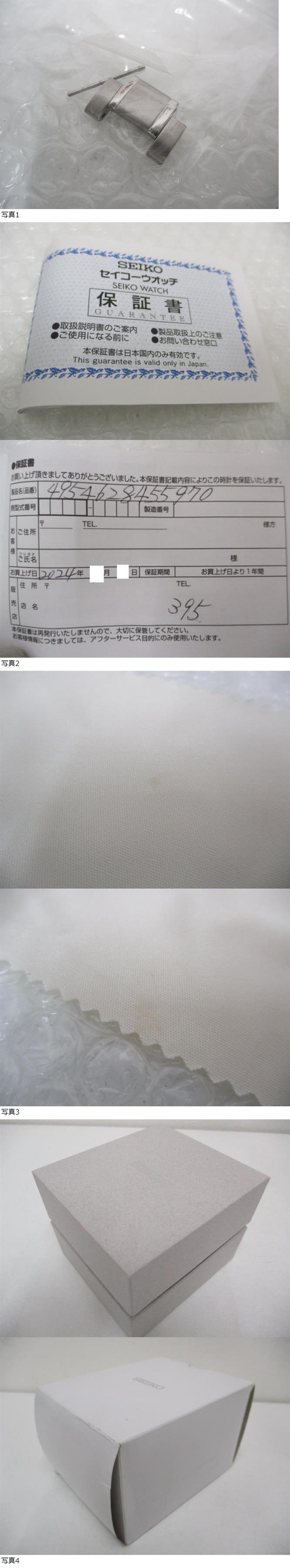 | 商品説明 | 譲渡品の為詳細不明です。 以下状態のご確認お願いします。 機能の状態 止まっておりましたが振ると稼働しました。 リューズ操作確認済です。 外装の状態 ケースや裏蓋、ベルトに傷があります。 (写真に写りにくい細かい傷もあります) その他付属の状態 コマ付です。 保証書は期限切れで折れ目やシワがあります。 布にシミ汚れがあります。 紙箱に汚れや傷みがあります。 予めご了承ください。 自宅保管の汚れなどがございます。 詳細は写真でご覧ください。 当方に専門知識が無い為 専門的なことはわかりかねます。 中古品ということをご理解のうえ、 写真にてご判断頂ける方、 ご理解いただける方のみご入札をお願いします。 神経質な方や美・完働品をお求めの方は、 ご入札をお控え下さいますよう、よろしくお願い致します。 | |