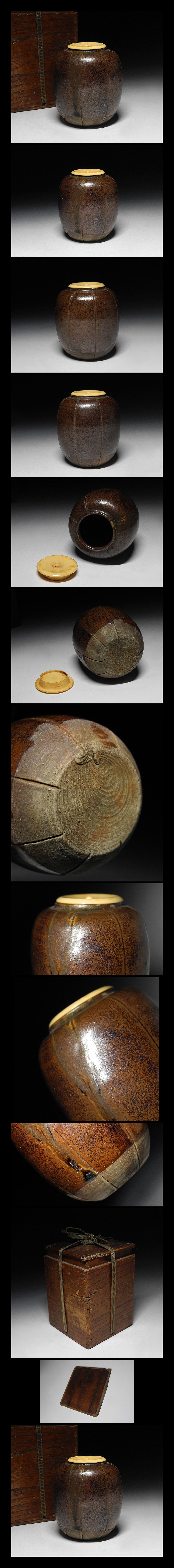 緑屋i■ 時代物 古瀬戸 飴釉 茶入 木箱 古陶磁 i9/0205-4/29-6#60 收藏