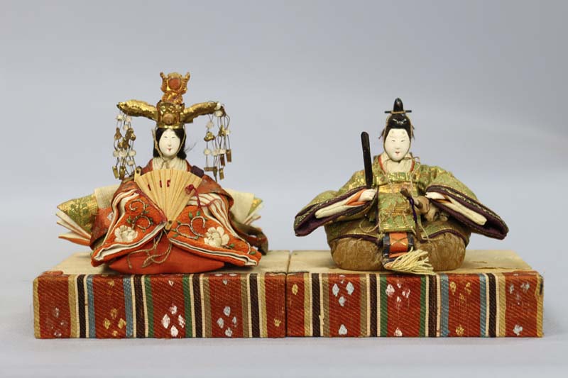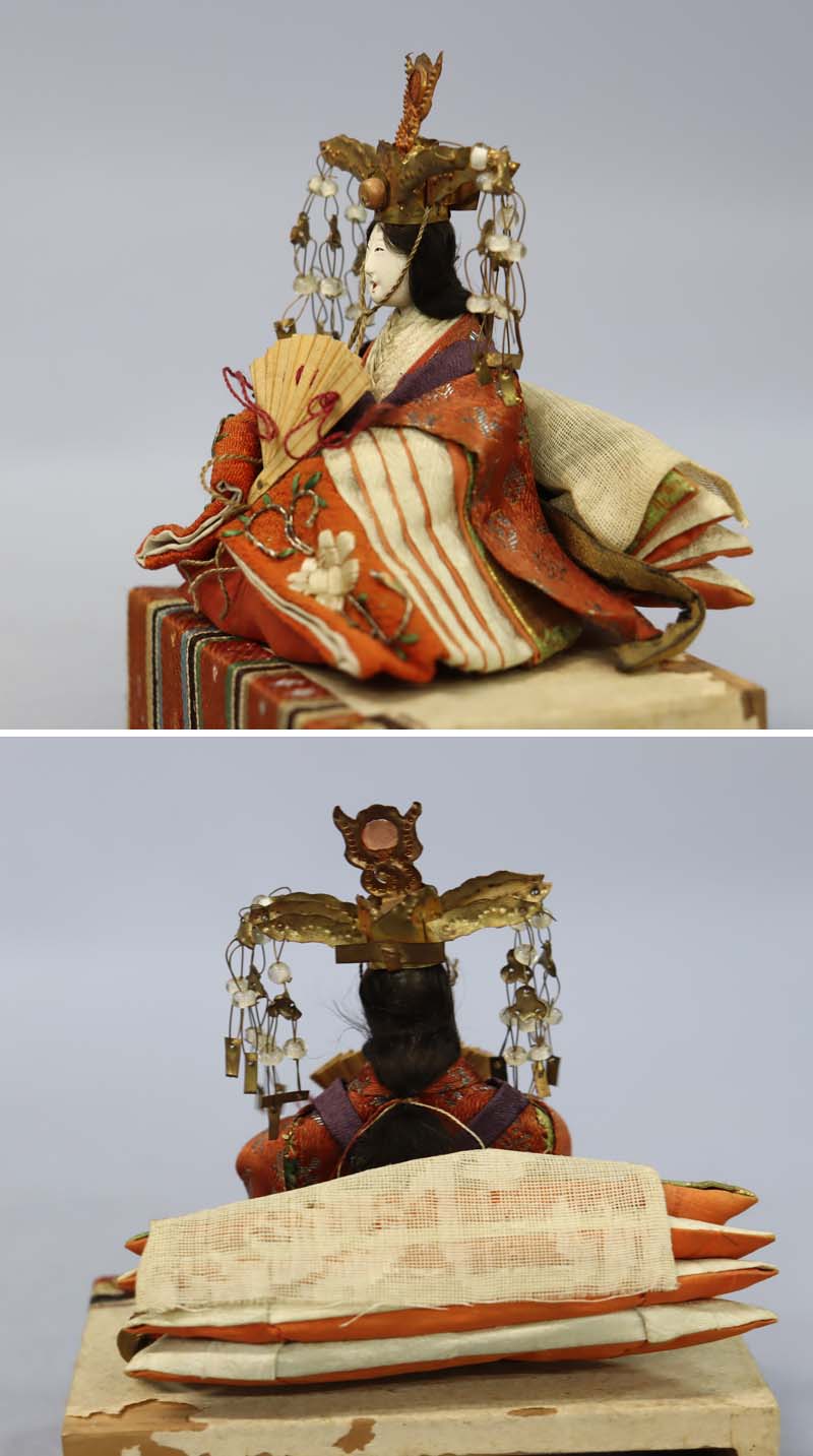 江戸時代後期の極小サイズの関東雛です。目は描き目。台と桐箱付。