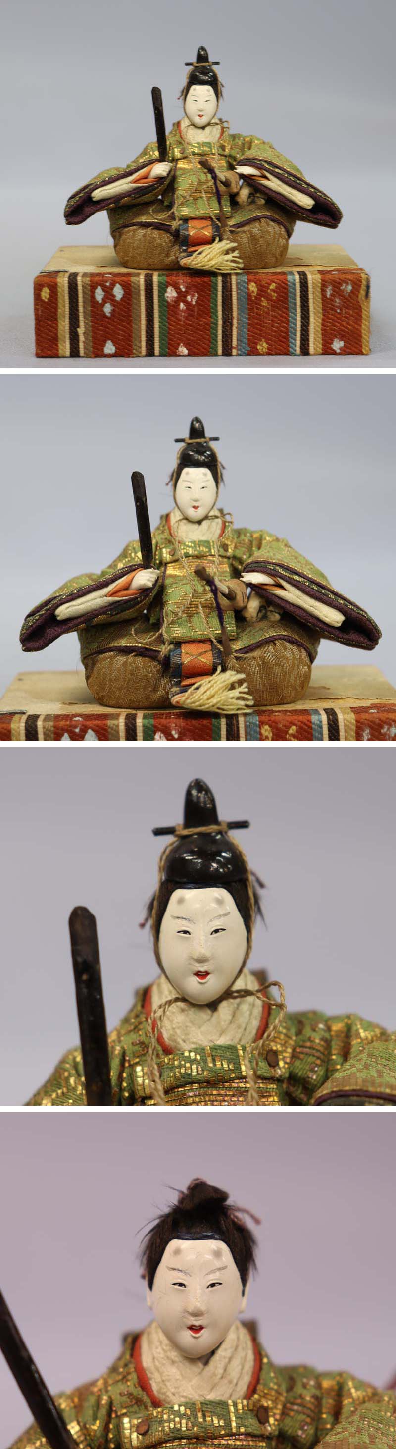 ■即決■ 江戸時代 極小サイズ 関東雛 男雛高8cm 台と桐箱付 ■ 古今雛 ミニチュア 小型 豆雛 内裏雛 ひな人形 雛人形 收藏