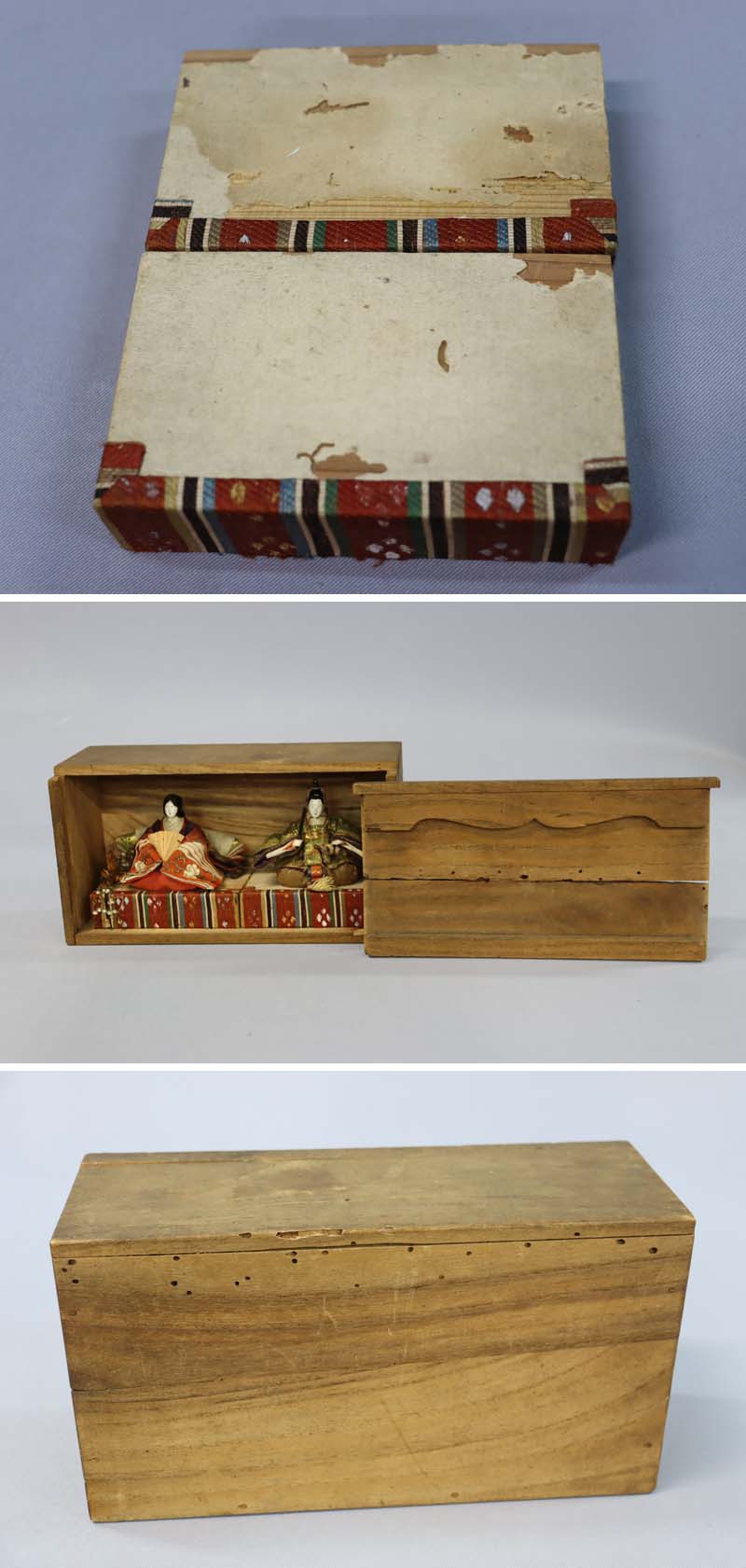 台に貼られている和紙と桐箱に虫食い跡がかなりあります。