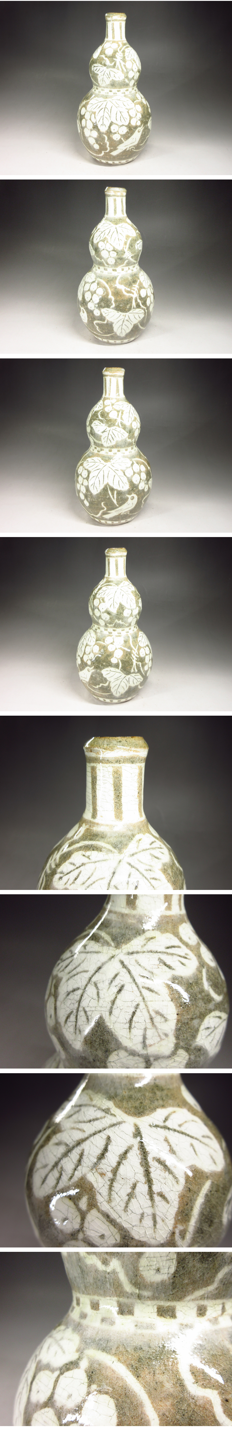 【漸】コレクター委託出品『土居恭司』造 象嵌葡萄文瓶 共箱 花入 花瓶 茶道具【HY3173】 收藏