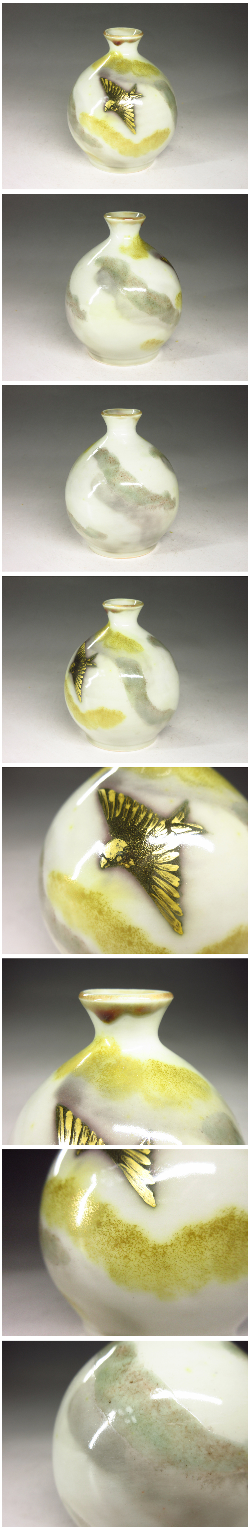 【漸】コレクター委託出品『伊藤北斗』造 金彩雀図徳利 共箱 師:藤本能道 酒器 酒杯【HY3156】 收藏