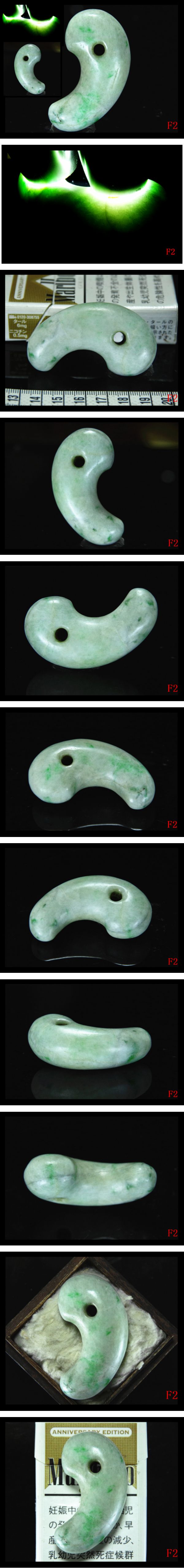 商品説明 ★★初出し品★極希少★入手困難★ ほかにも色々出品して ます!ぜひご覧ください! 超格安価格スタートの出品で、時代古玩骨董古美術品が好きな方 お気軽にお楽しみにどうぞ ノークレームノーリターンを厳守できる方のみご入札お願いします ★★★★★★★★★★★★★★★★★★★★★★★★★★★★★★ ※検 古墳期 縄文 弥生★コレクター様の品より委託出品時代骨董アンティーク、古玩 旧家蔵出 放出品 伝青森県青森県弘前市十腰内周辺出土時代古玩★古美術 表面風化★肌艶良く★透光性姿形抜群★綺麗な★超美し迫力 ★古色★極上質★アップルグリーン翠緑白色 色合い 上古★最高級石質糸魚川硬玉ロウカン翡翠製 迫力極希少★大型6.2CMコ字形勾玉 ☆迫力な存在感厚重感あり★ 現在この様極高品質上品な糸魚川硬玉翡翠磨製勾玉は大変貴重な為、一般的な市場ではまず出回らず, お眼にかかれません。手に入れるのが大変難しいでございます。 ★大変貴重な日本国石糸魚川極上質翡翠の典型的な美しい縞斑模様が見られます. 日本糸魚川産ヒスイは、世界最古の加工歴史があります。 縄文時代前期(約5000~6000年前)のころに出現し、 その後、弥生・古墳時代を通じ、装身具・勾玉類の主流を占めていました。 現在、日本糸魚川産ヒスイは天然記念物に指定され採掘は出来ません。 御覧にように 大変綺麗な緑白色色合い 比類ない迫力造形 ★古い時代に伴う表面風化によるカセたりして状態エクボ擦れが見られますが、石質のキメ細かい、磨きも非常に良く★古色と魅力に溢れるさまツヤツヤとした神秘的な艶に包まれてます。 ★ずっと見ていても飽きないほど美しい綺麗な形 穴内部には土錆が見られ周辺は玉擦れ痕が見られます。 強光で見ると,全体的に光を拡散し,綺麗な神秘幻的な透明感が見られます。 極少なくその希少性も大きな価値となっています 大変貴重な迫力のあるお古玩★古美術品勾玉 時代古玩骨董★古美術品が好きの方是非この機会に ★商品表面の土錆、朱彩、汚れ、擦れ、傷、石目、石筋等が御座います。 古玩★古美術品の事、ご理解のある方のみ落札 下さい。 |