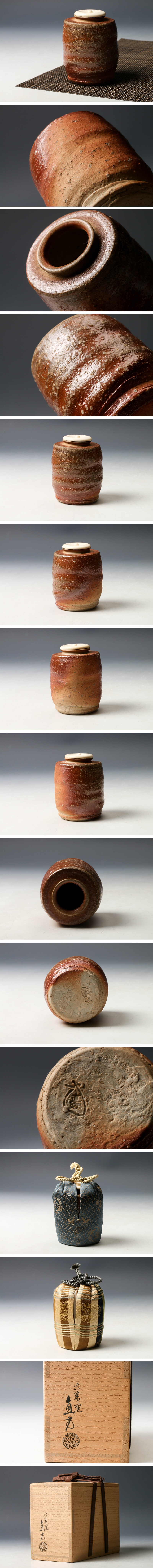 【佳香】五代 上田直方 古来窯 信楽茶入 共箱 仕覆(鳥襷緞子) 替仕覆(江戸和久田金襴) 茶道具 本物保証 收藏