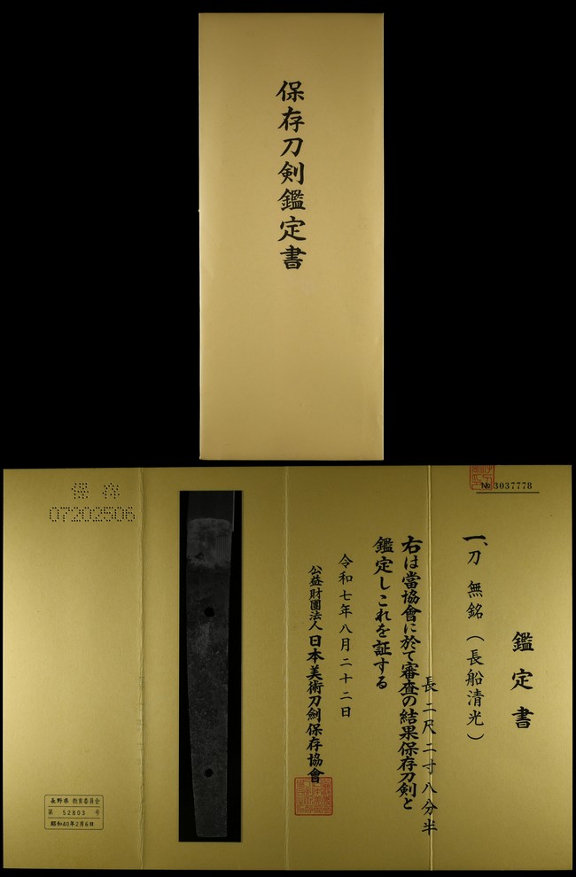 【勇】保存刀剣 備州長船清光 室町後期頃 板目肌に直刃調の出来よい一刀 寒山鞘書き 旧家蔵出し品 二尺二寸八分半 刀 收藏